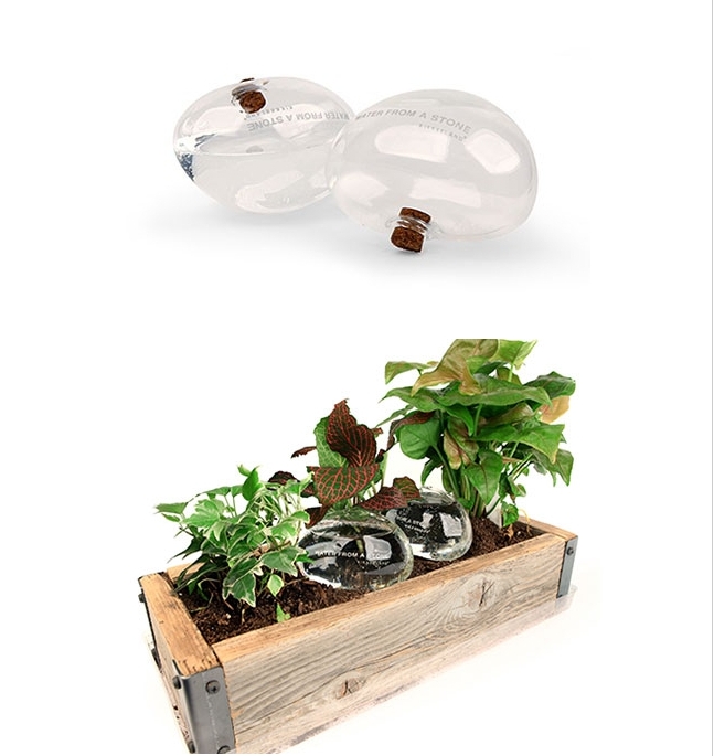 最近美國一名設(shè)計師設(shè)計出了一款時尚的“澆水石頭”(如圖),能幫助主人給植物進行持續(xù)滴灌,可為植物提供三到四天的給養(yǎng)。這個時尚的澆水工具取名為“石頭里的水(Water From A Stone)”,這是一只手工吹制的玻璃器皿,水可以從它上面的一個小洞滲出來。