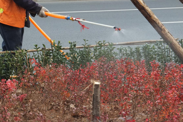 園林公司煙臺(tái)經(jīng)濟(jì)技術(shù)開發(fā)區(qū)五指山路道路綠化景觀工程為了確保苗木能夠順利越冬,提高苗木成活率,11.27日對苗木進(jìn)行采取灌溉凍水、涂白和噴灑防凍劑的措施。