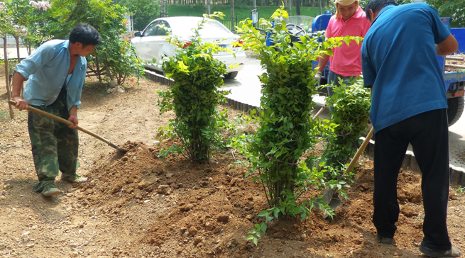 地形整理完成后進行苗木栽植(主要是一些花灌木及耐水性草花)
