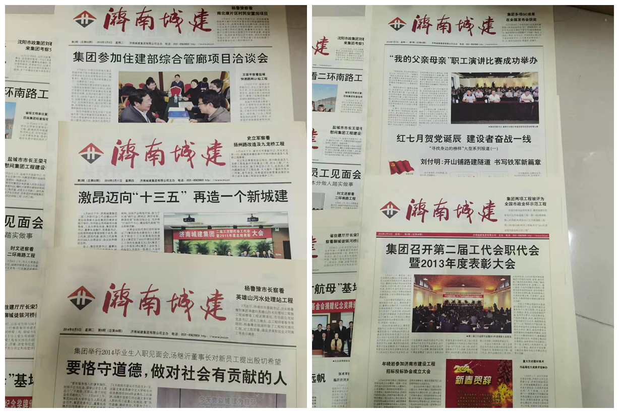 細(xì)心翻看這張張泛黃的舊報(bào)紙,一股厚重的書香氣息撲面而來,薄薄的紙張不僅記載當(dāng)下時(shí)代變遷,更記錄了城建集團(tuán)的崢嶸歲月與光輝歷程。2013年《斯里蘭卡政府舉行CKE工程通車典禮》,2014年《濟(jì)南再添“百億級(jí)航母”企業(yè)》《集團(tuán)主編首部國家標(biāo)準(zhǔn)出版發(fā)行》《集團(tuán)首臺(tái)工地洗車臺(tái)投入使用》,2016年《激昂邁向“十三五”再造一個(gè)新城建》《把握發(fā)展脈搏 做PPP項(xiàng)目先行者》等等,無一不體現(xiàn)出城建人勇于開拓、創(chuàng)新求變、實(shí)踐擔(dān)當(dāng)、爭創(chuàng)第一的發(fā)展之路。